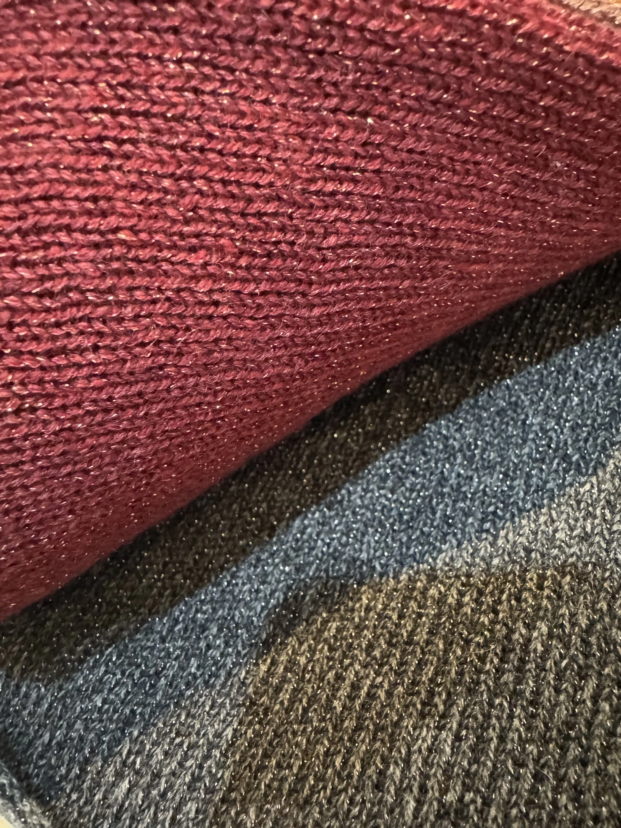Gleiches Prinzip aber plattiert mit Lurexglitzergarn.